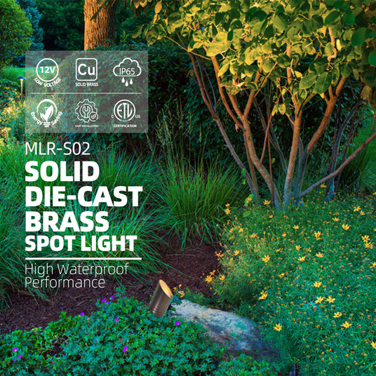 MALORY Low Voltage LED Outdoor Brass Landscape Spot Lights for Yard and Garden (MLR-S02)
