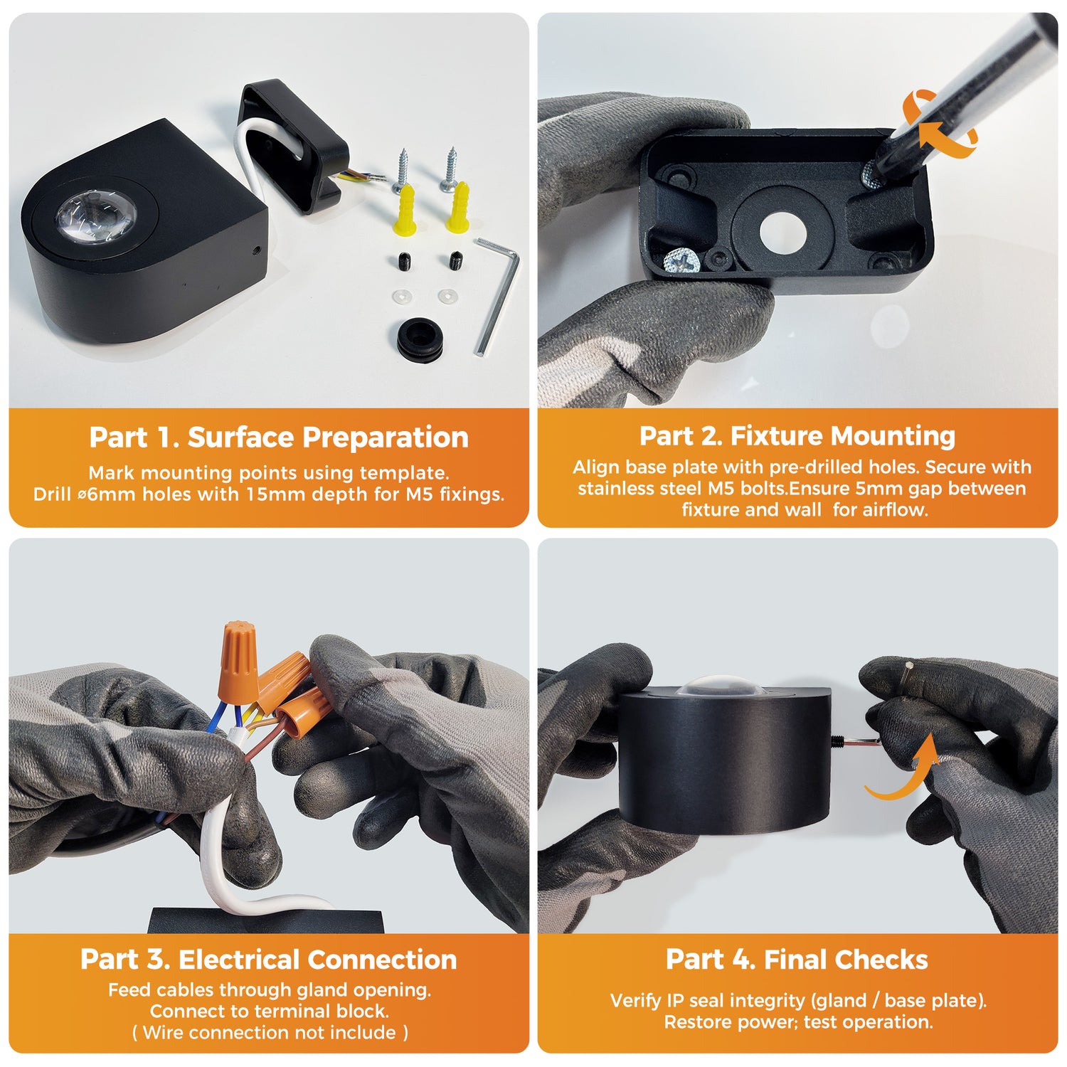 - IP65 Waterproof: This modern wall sconce is constructed with aluminum design, create a tight vacuum environment. Also it is waterproof, rust-proof, and corrosion-resistant. It can be used in outdoor environments with heavy rain and snow for many years
