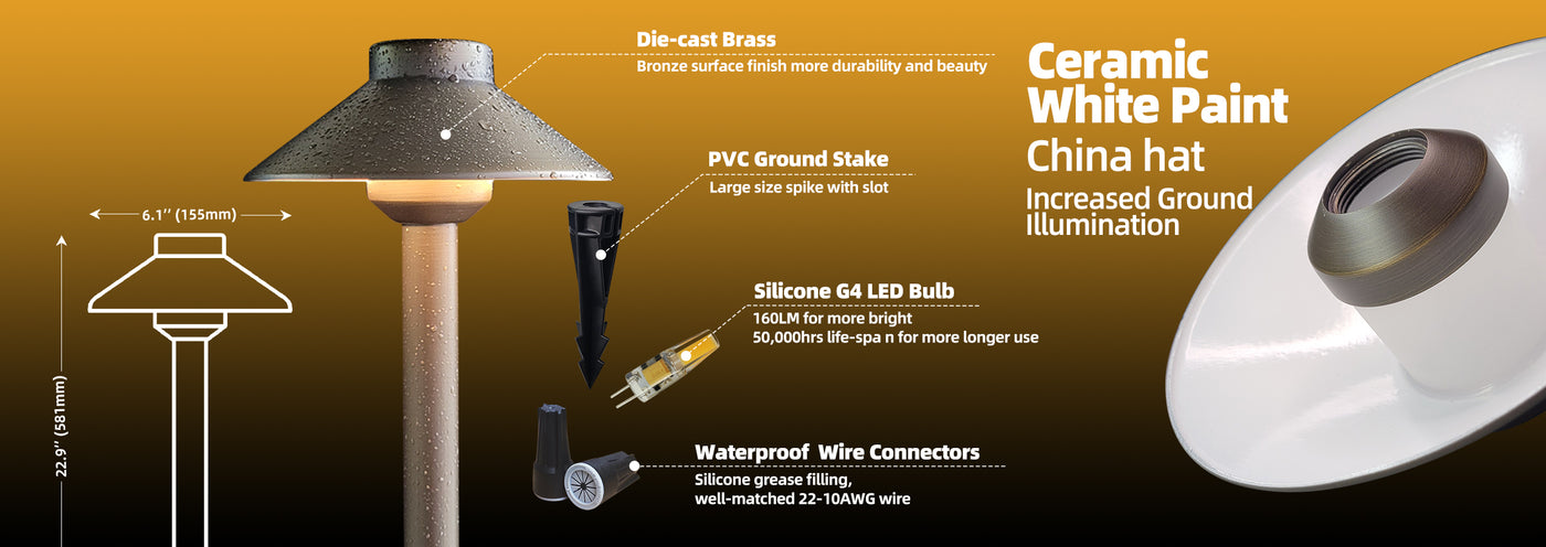 MALORY Brass Low Voltage Landscape Path Lighting for Garden Walkway Patio Yard (MLR-P01)
