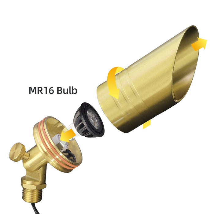 MALORY 12V Low Voltage Brass LED Spot Light (Bronze, Brass) for Outdoor Landscape(MLR-S05)